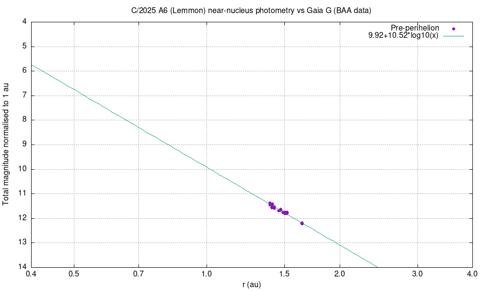 Re: [BAA Comets] C/2025 A6 (Lemmon) near-nucleus photometry